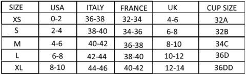 *Please note this is a universal size chart, exact measurements may vary by designer.