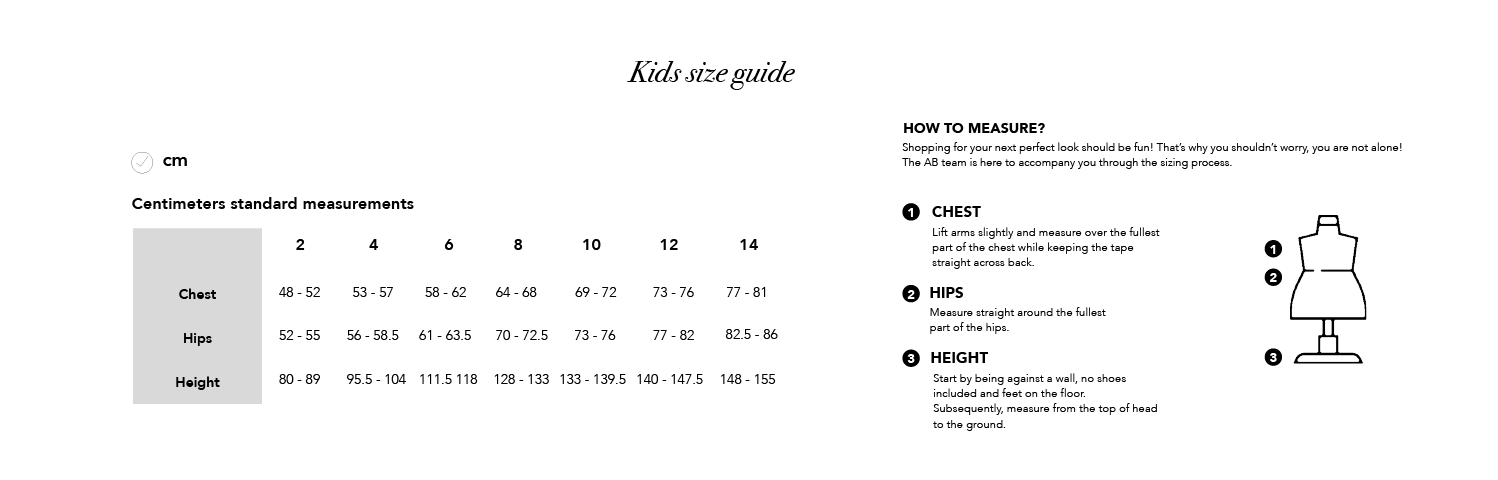 *Please note this is a universal size chart, exact measurements may vary by designer.